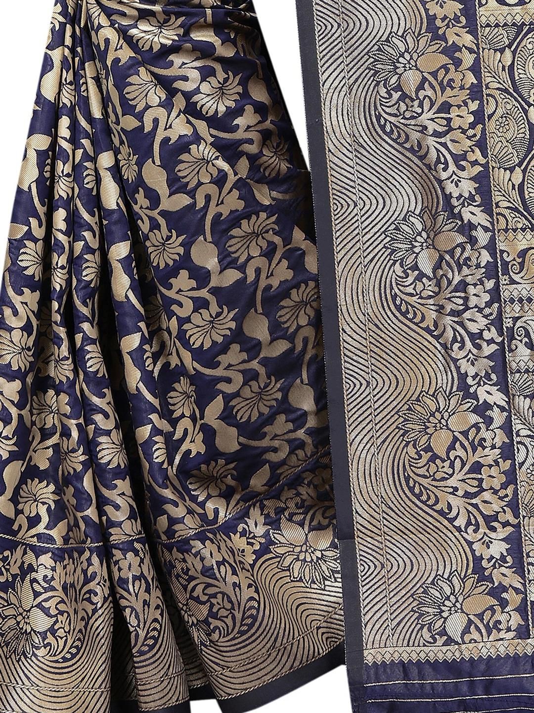 A Banarasi saree is a saree made in Varanasi, a city which is also called Benares or Banaras. The sarees are among the finest sarees in India and are known for their gold and silver brocade or zari, fine silk and opulent embroidery. The sarees are made of finely woven silk and are decorated with intricate design, and, because of these engravings, are relatively heavy.Their special characteristics are Mughal inspired designs such as intricate intertwining floral and foliate motifs, kalga and bel, a string of upright leaves called jhallar at the outer, edge of border is a characteristic of these sarees. Other features are gold work, compact weaving, figures with small details, metallic visual effects, pallus, jal (a net like pattern), and mina work.The sarees are often part of an Indian bride's trousseau.Depending on the intricacy of its designs and patterns, a saree can take from 15 days to a month and sometimes up to six months to complete. Banarasi sarees are mostly worn by Indian women on important occasions such as when attending a wedding and are expected to be complemented by the woman's best jewelry.