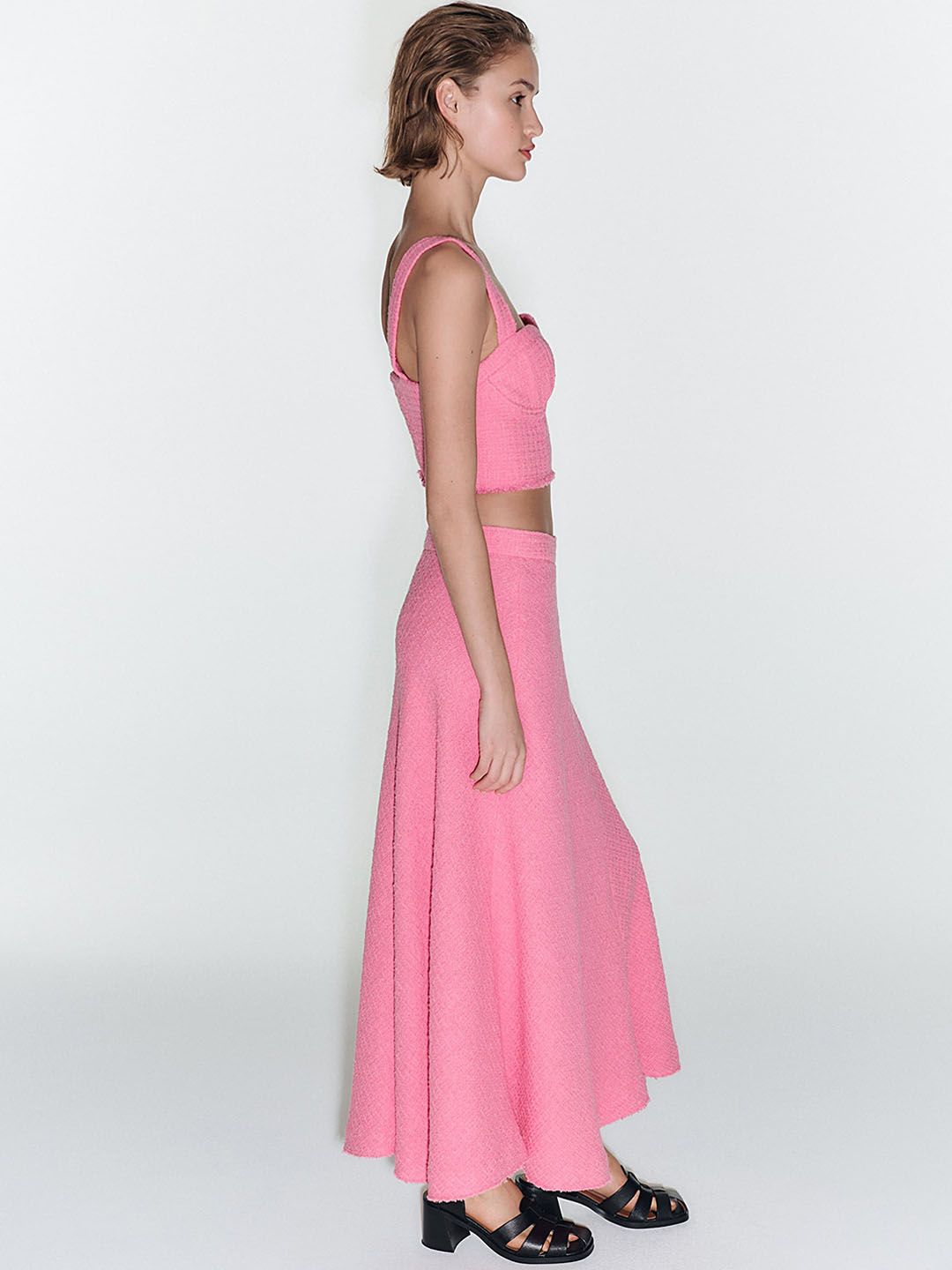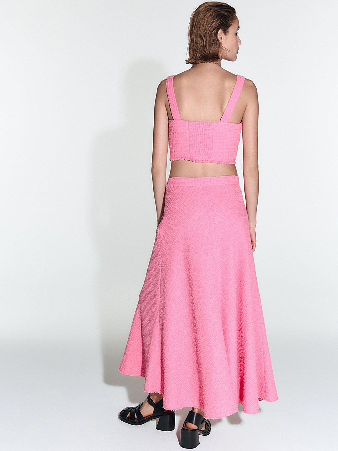 Pink Solid flared maxi skirt, has an elasticated waistband with slip-on closure, and a Straight hem
