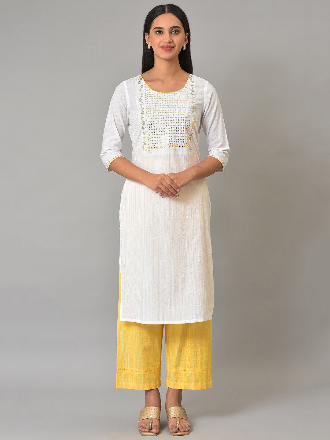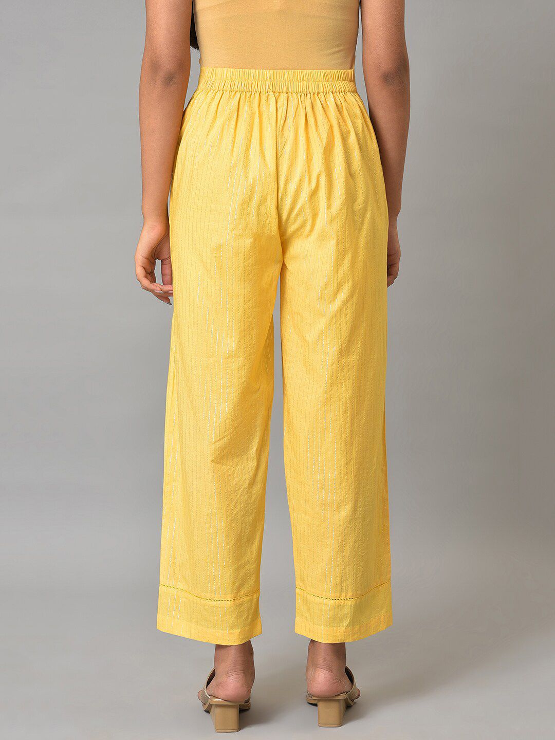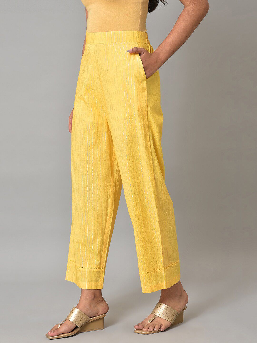 Spruce Up A Look Or Spend The Day Comfortably In This Narrow Palazzo. Made From Cotton, It Has A Partially Elasticised Waistband, Front Side Pockets & A Mid-Rise Fit. It Features A Lace Around Bottom