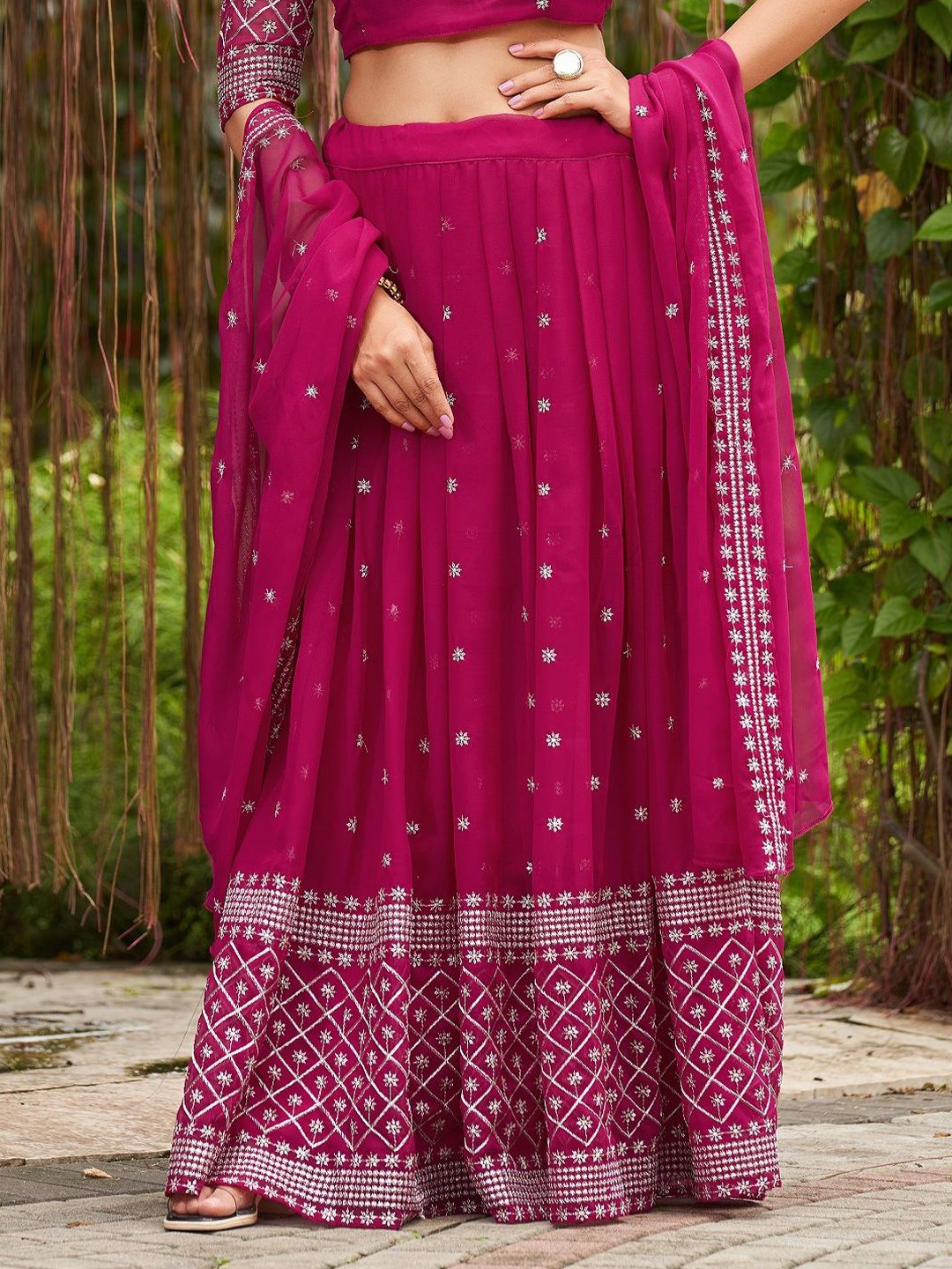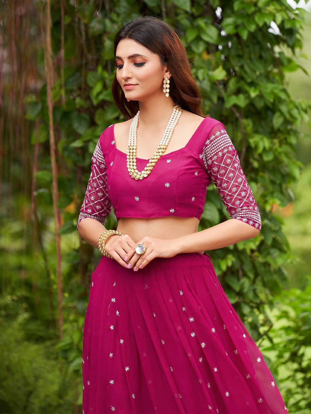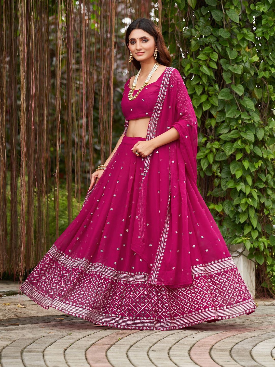 Pink Color Embroidered And sequence Georgette Flared Lehenga Choli Set with Dupatta