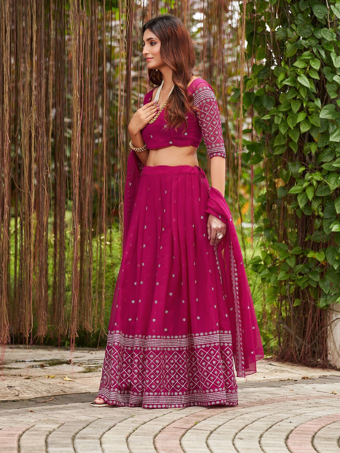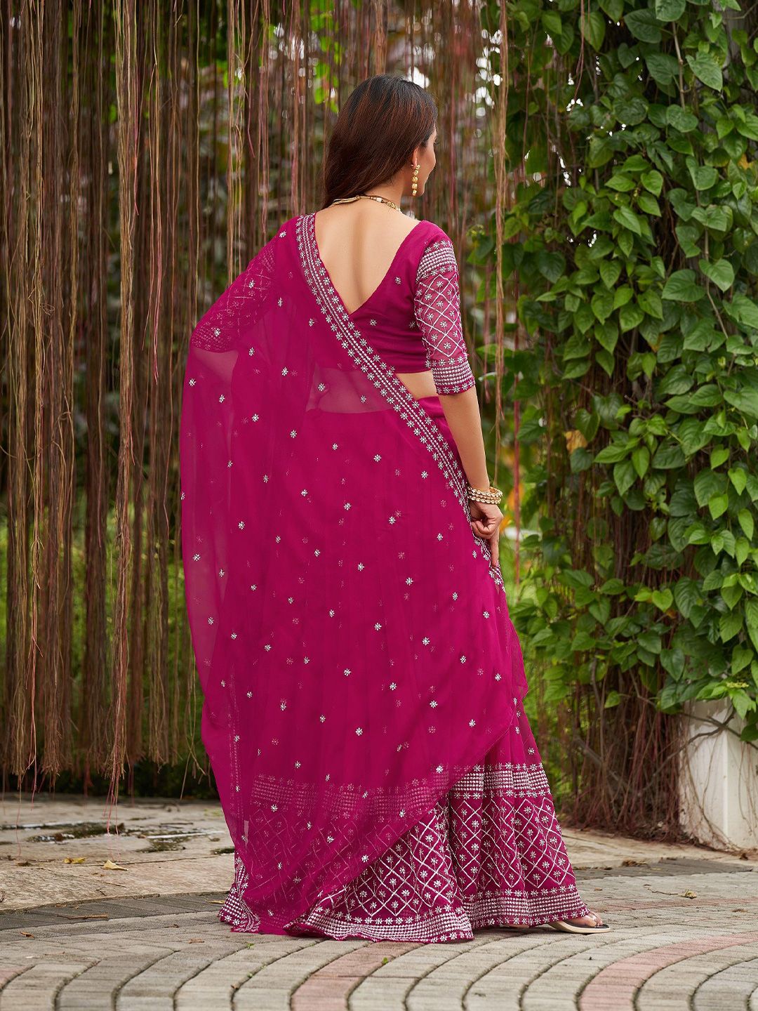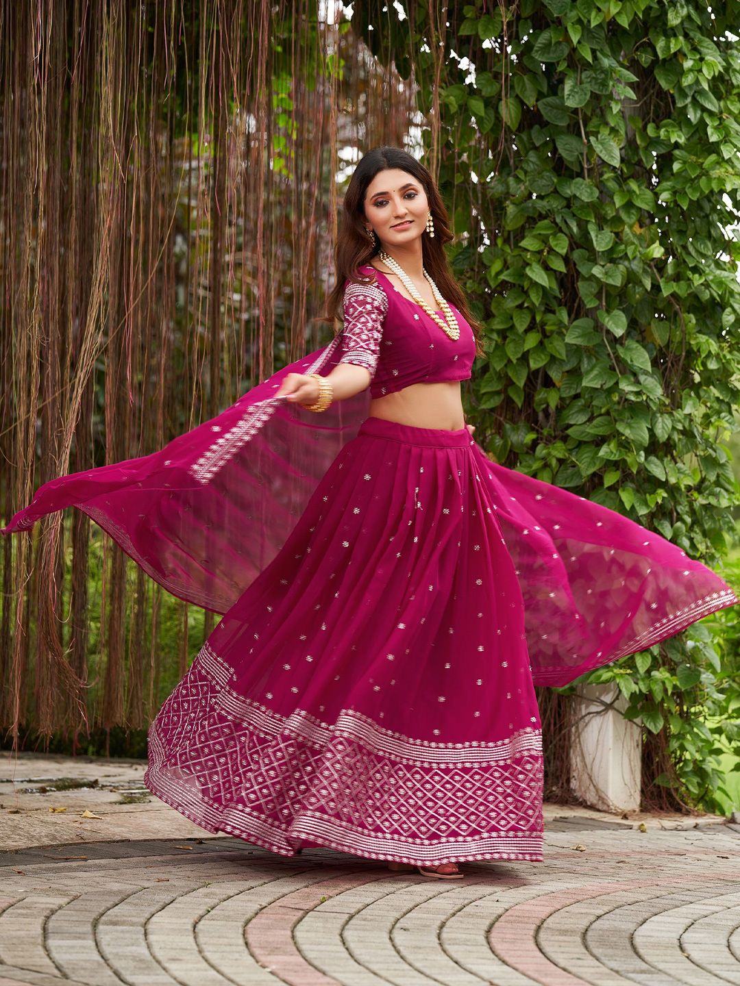 Pink Color Embroidered And sequence Georgette Flared Lehenga Choli Set with Dupatta