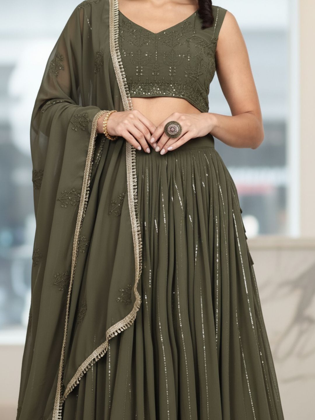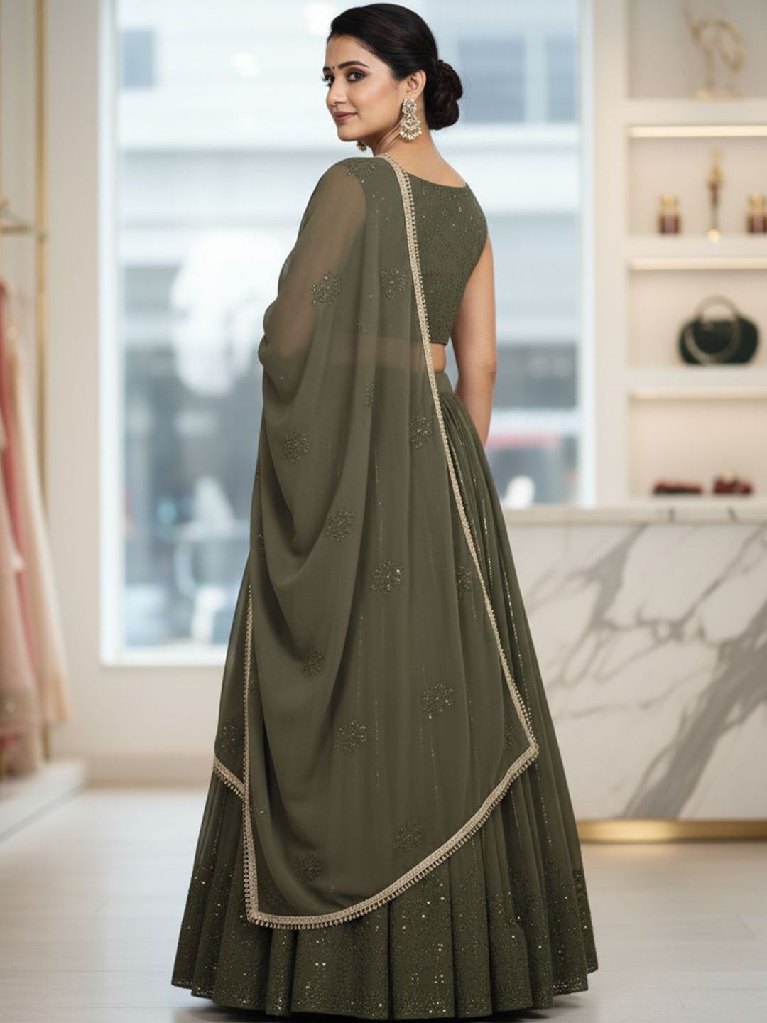 Lehenga fabric : Georgette, Choli fabric : Georgette, Dupatta fabric : Georgette, Lehenga inner : Crepe, Cancan & Canvas attached, Hand Wash