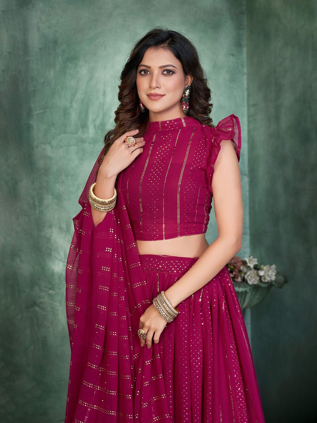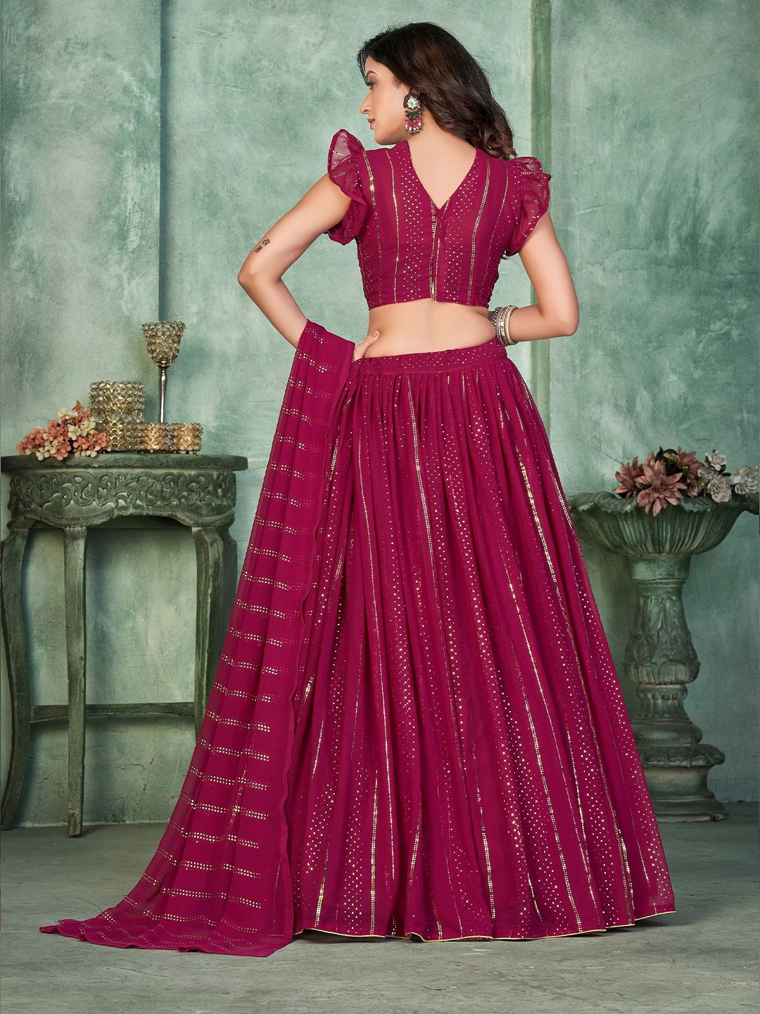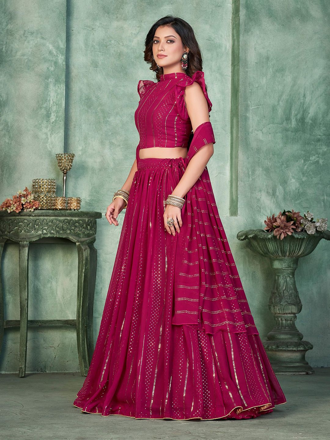 Dark Pink Embellished With Metal Foil Georgette Lehenga Choli