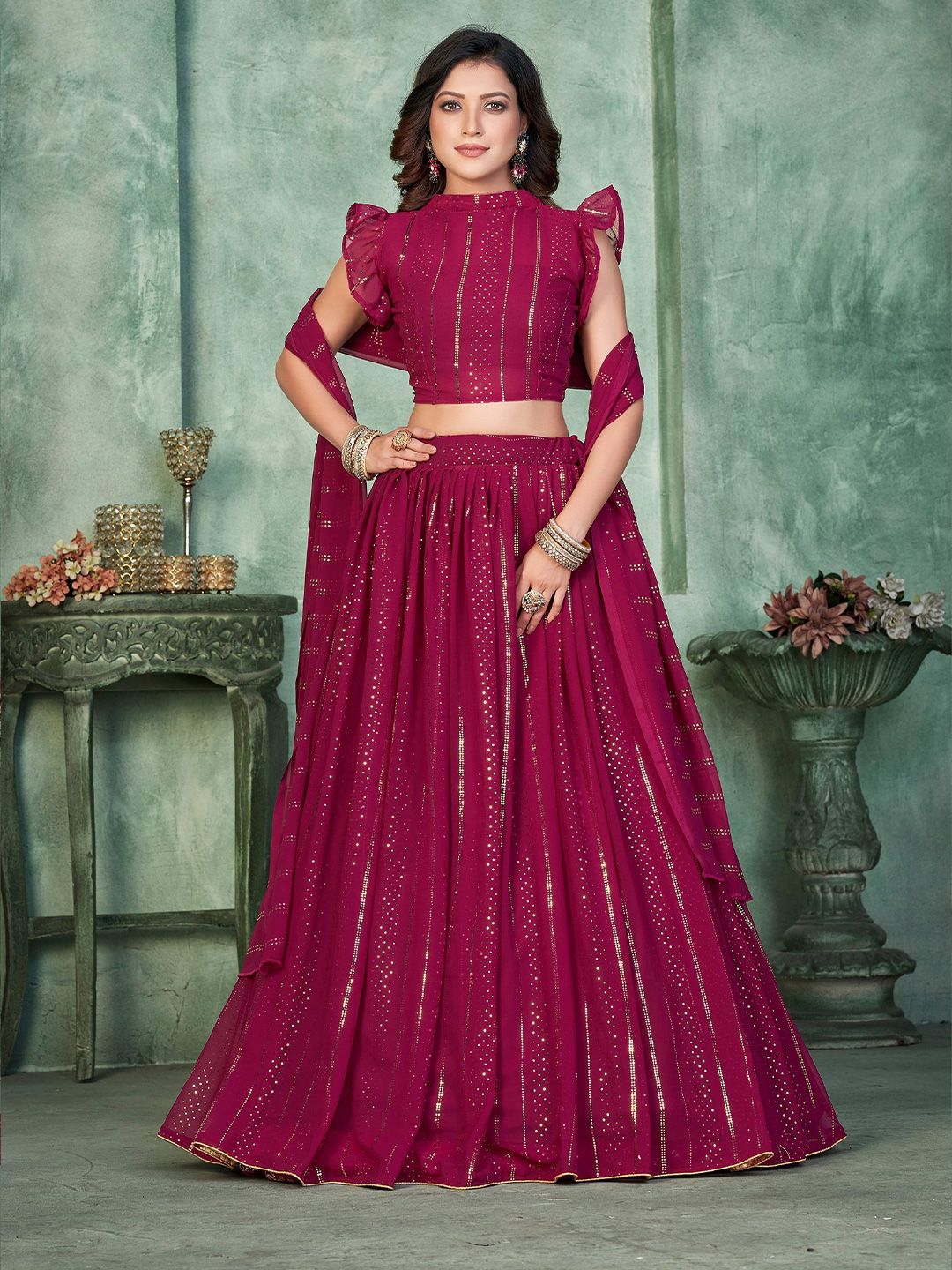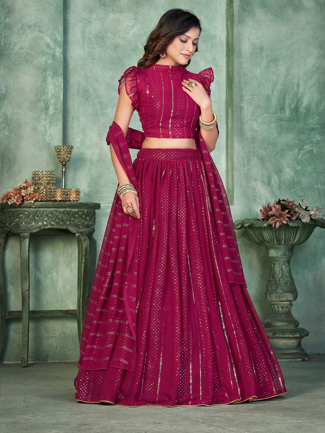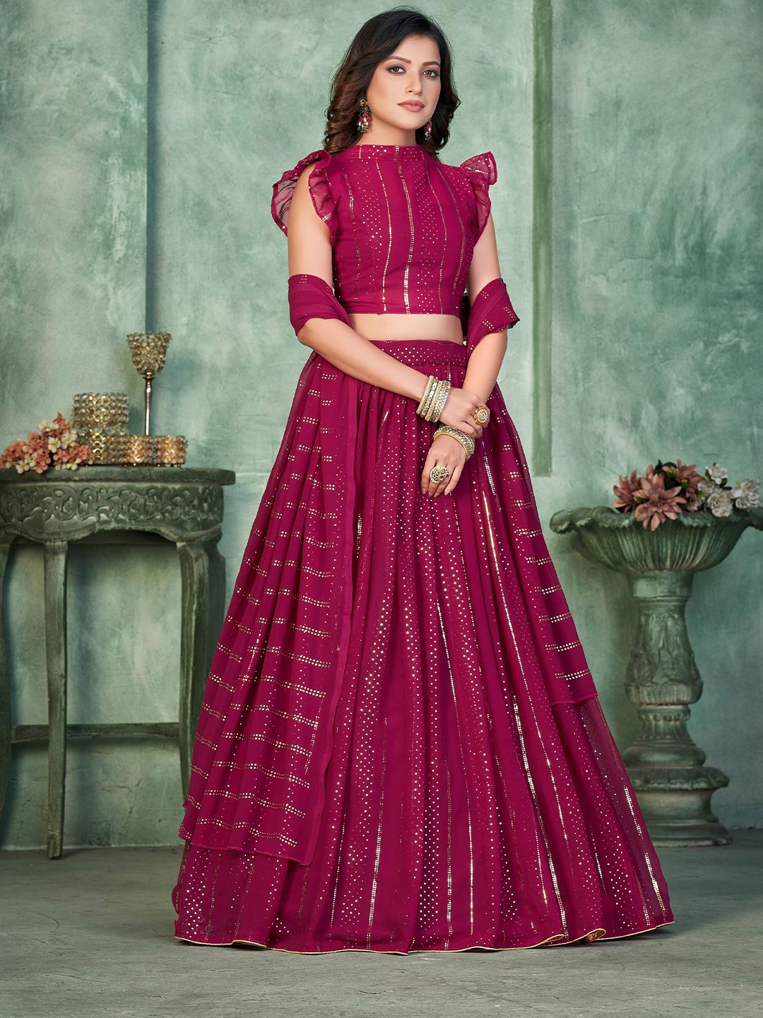 Dark Pink Embellished With Metal Foil Georgette Lehenga Choli