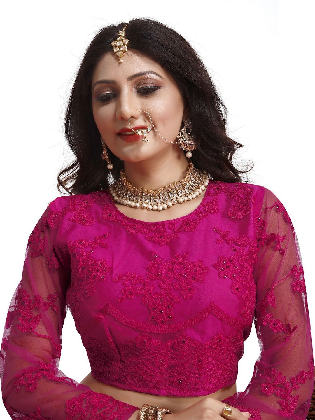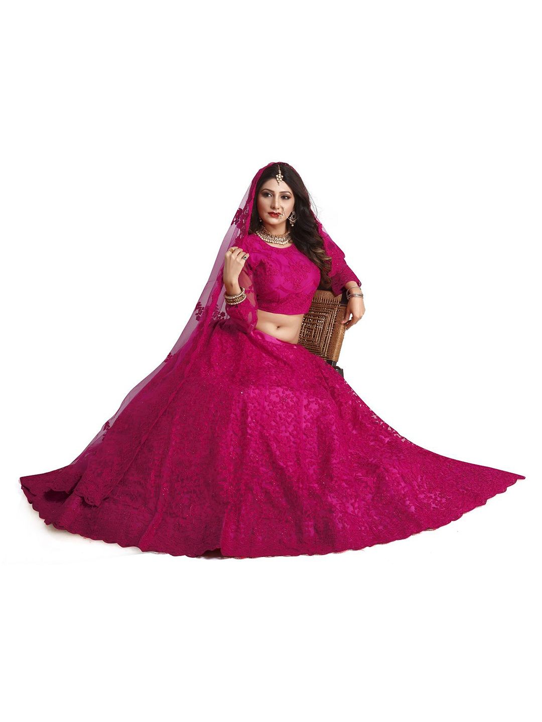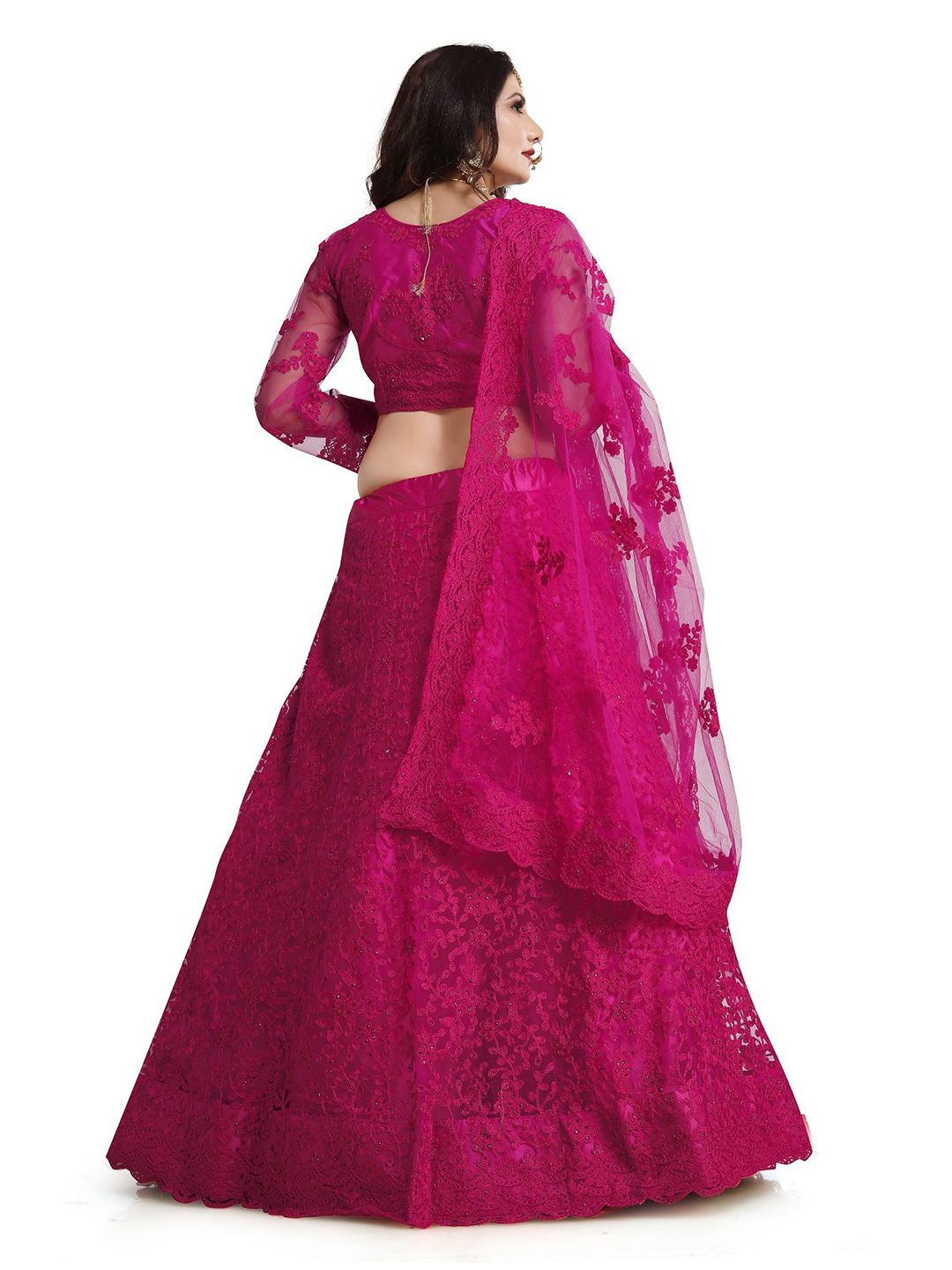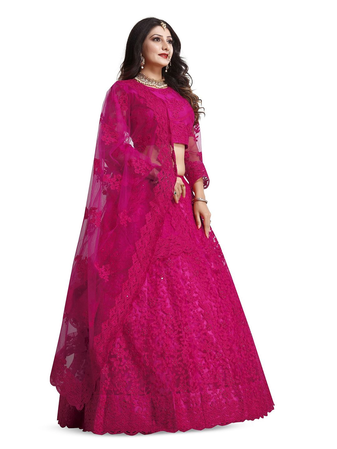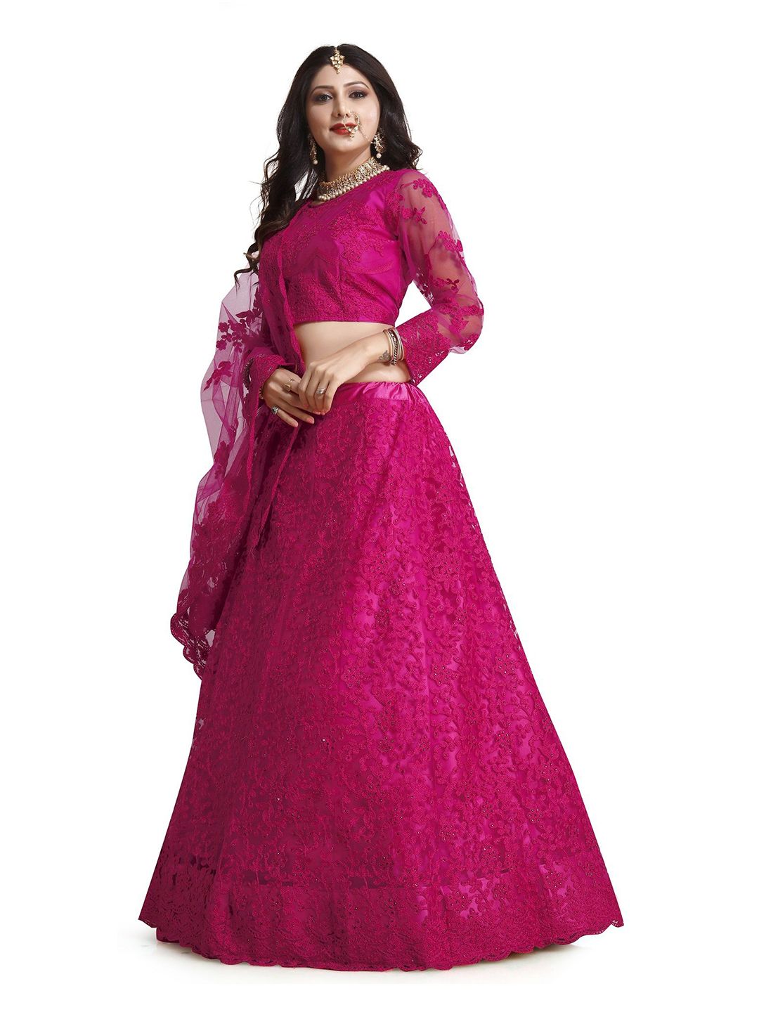 Pink Color Net Fabric Embroidered Flared Lehenga Choli Set with Dupatta