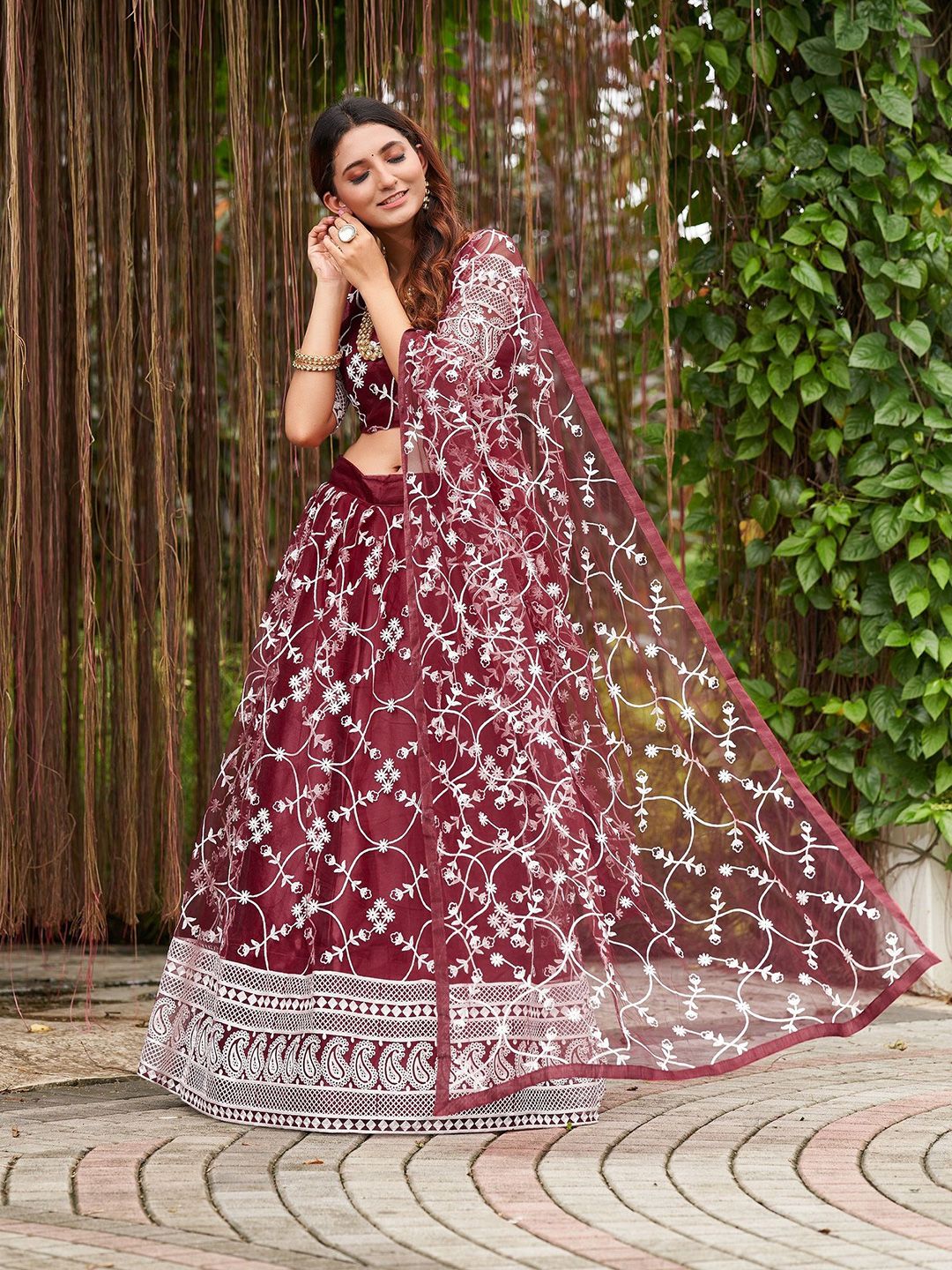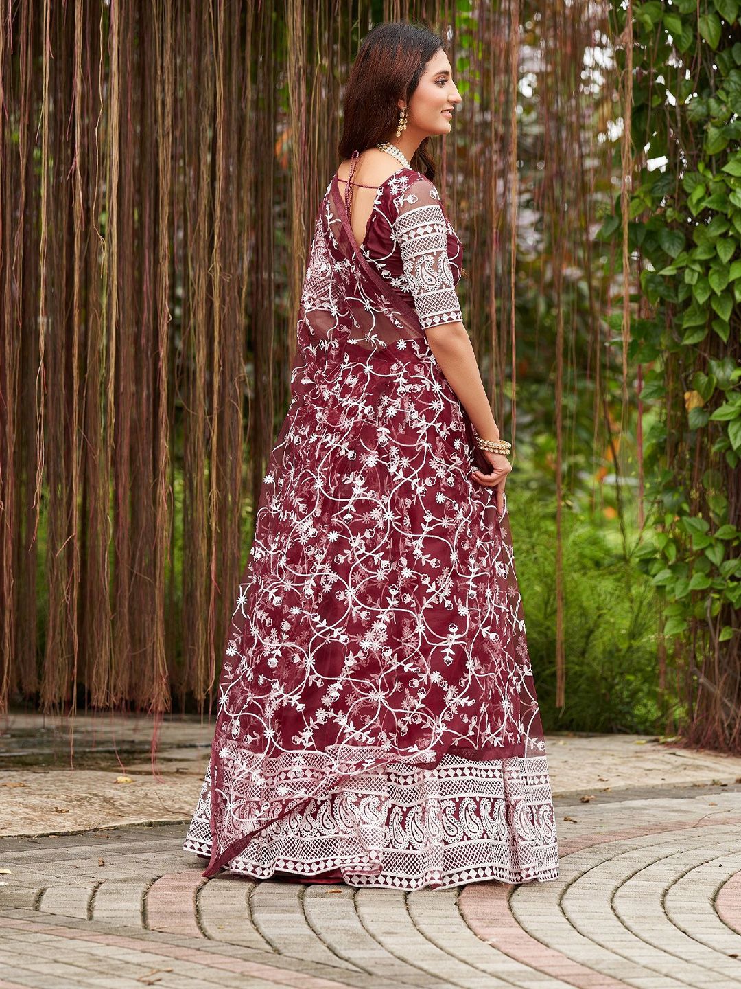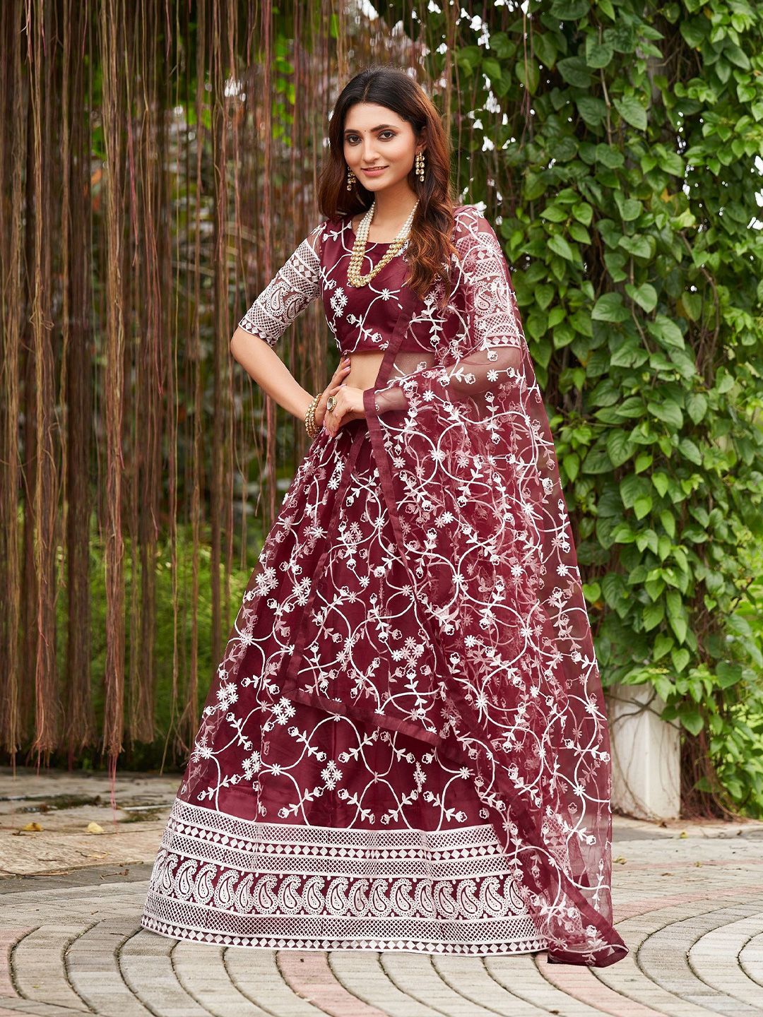 Net Embroidered Flared Lehenga Choli Set with Dupatta