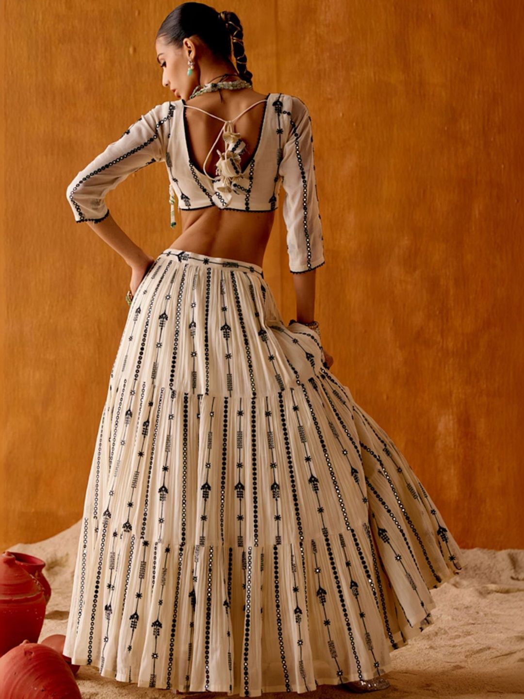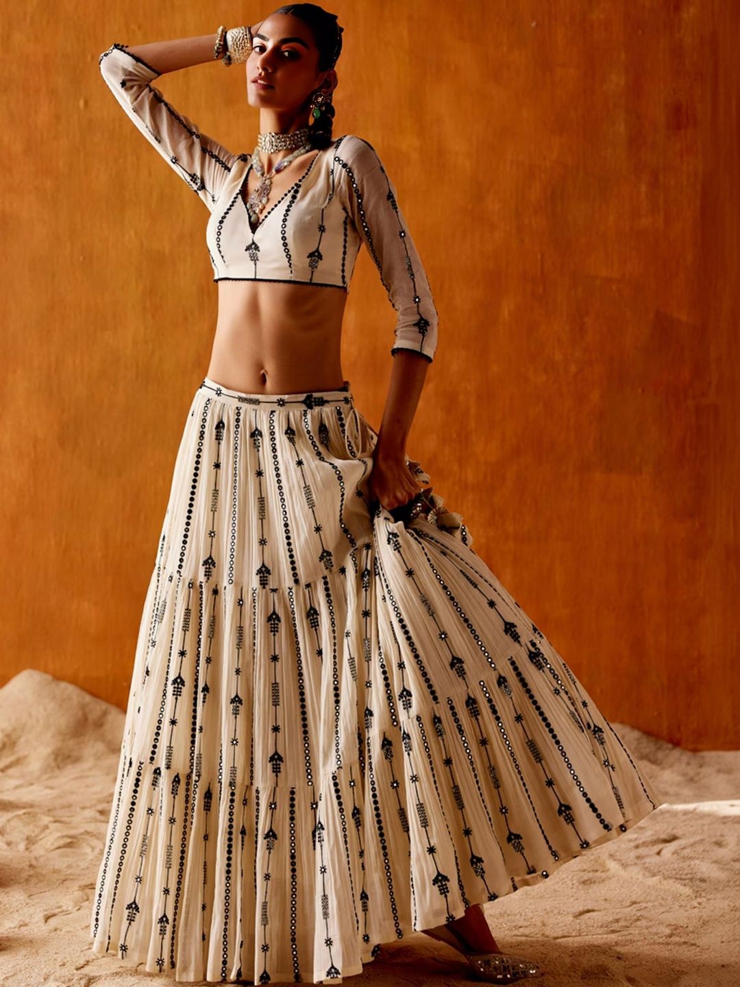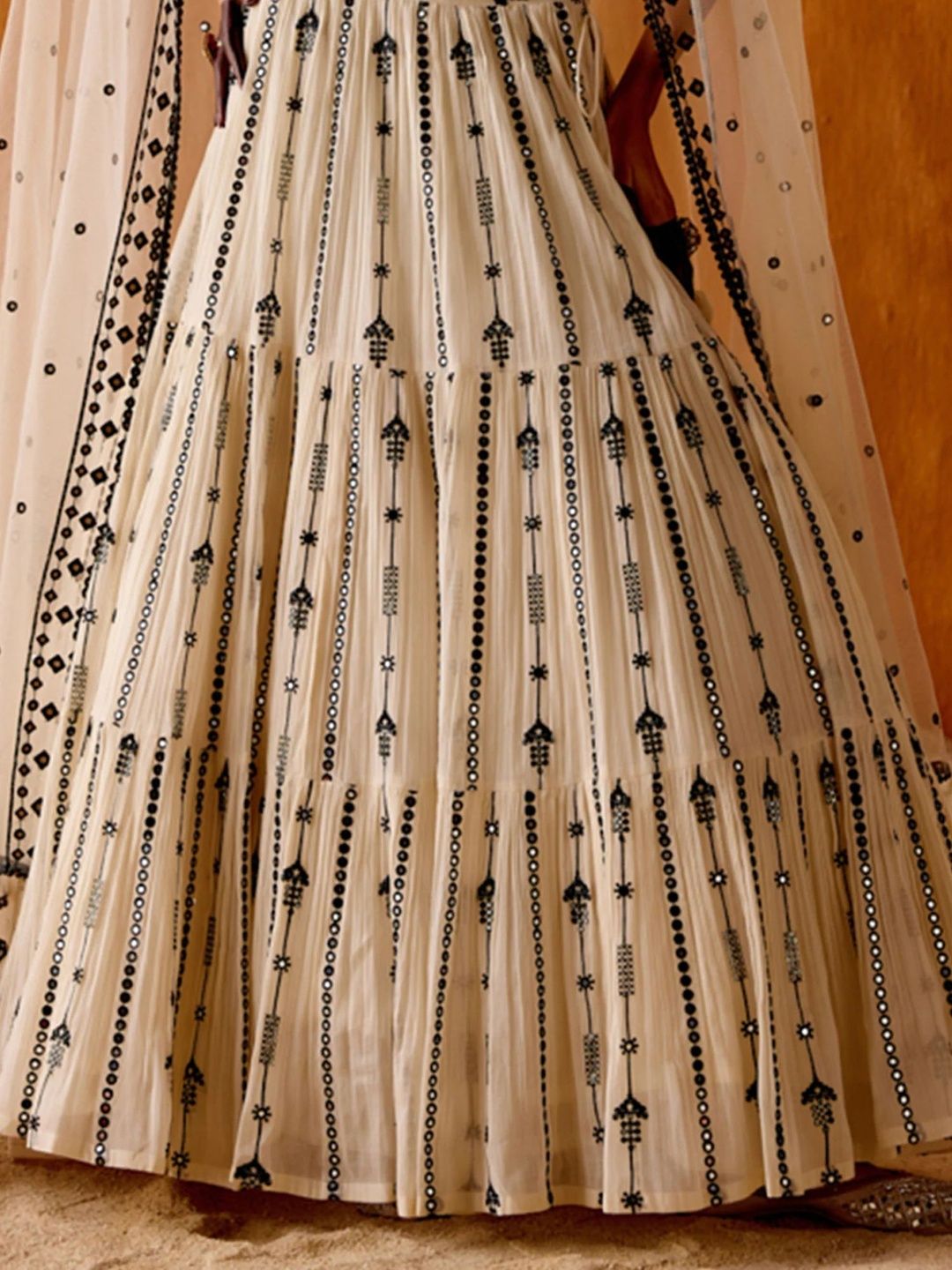 LEHENGA LENGTH - 107 CM , LEHENGA WIDTH - 107 CM , CHOLI FABRIC LENGTH - 100 CM (UNSTITCHED), LEHENGA FLARED - 8 MTR.