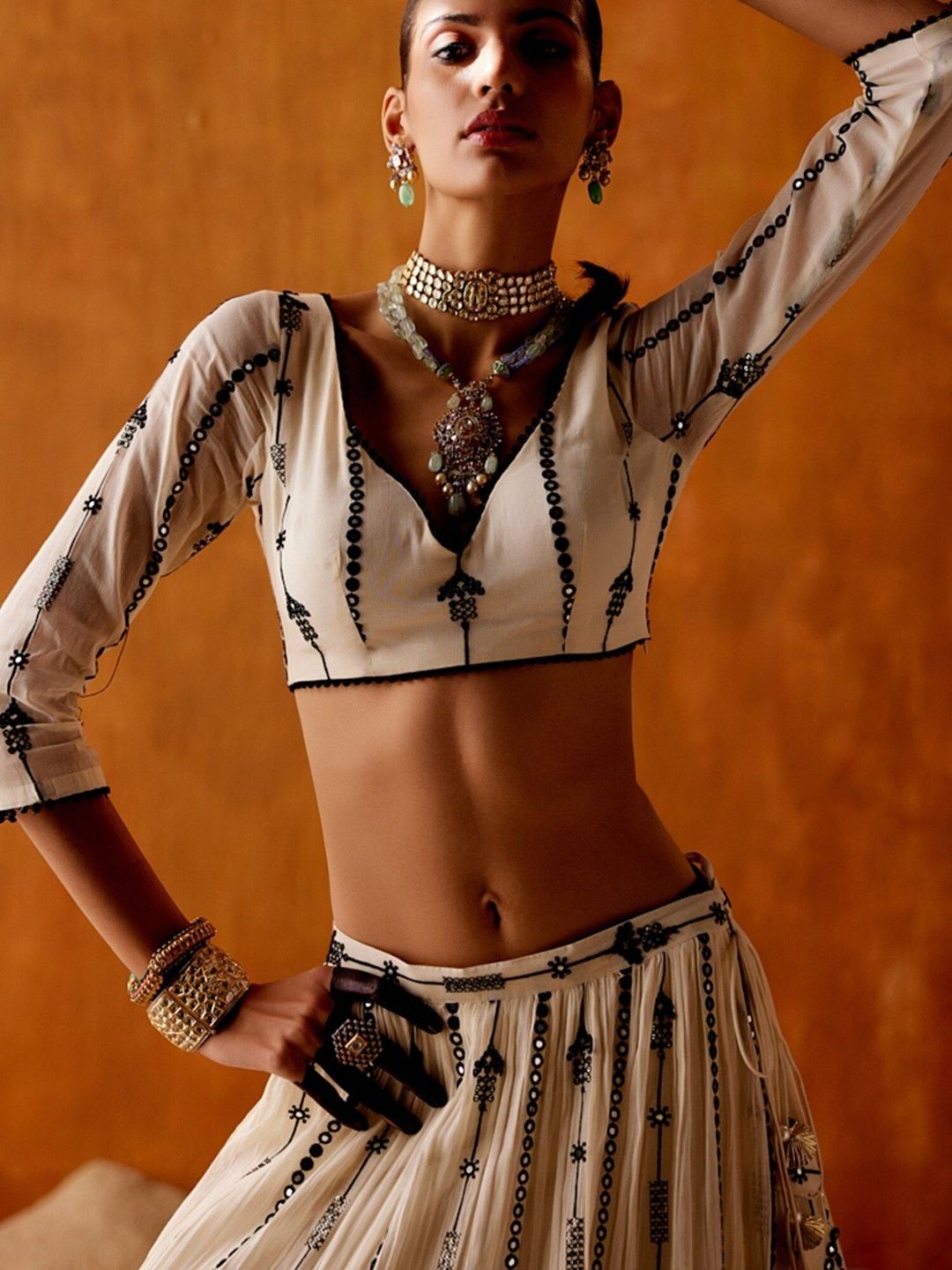Perfect for festive occasions, weddings, sangeet nights, or traditional gatherings, the minimalist design adds a sophisticated touch while offering endless styling possibilities. Pair it with statement jewelry and heels to complete your graceful ethnic look.