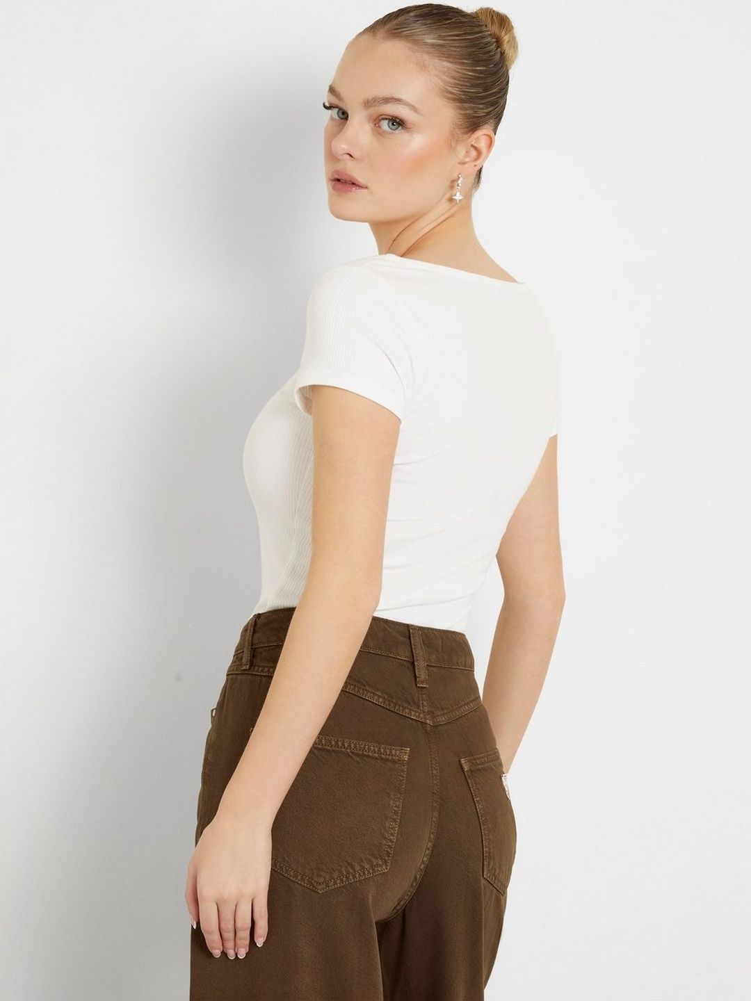 Elevate your wardrobe with our chic and versatile regular fit top, designed for the modern woman who values both comfort and style. Crafted from a luxurious blend of 93% viscose and 7% elastane, this top offers a soft, breathable feel with just the right amount of stretch for a flattering silhouette. The solid pattern provides a timeless appeal, making it a perfect staple for any occasion. Featuring a sophisticated scoop neck and short sleeves, this top effortlessly combines elegance with casual ease. The slip-on closure ensures a hassle-free dressing experience, allowing you to focus on your day with confidence. Whether paired with your favorite jeans for a relaxed look or dressed up with a skirt for a night out, this top is a must-have addition to your collection. Experience the perfect blend of comfort and style with this essential piece that promises to become a go-to favorite.