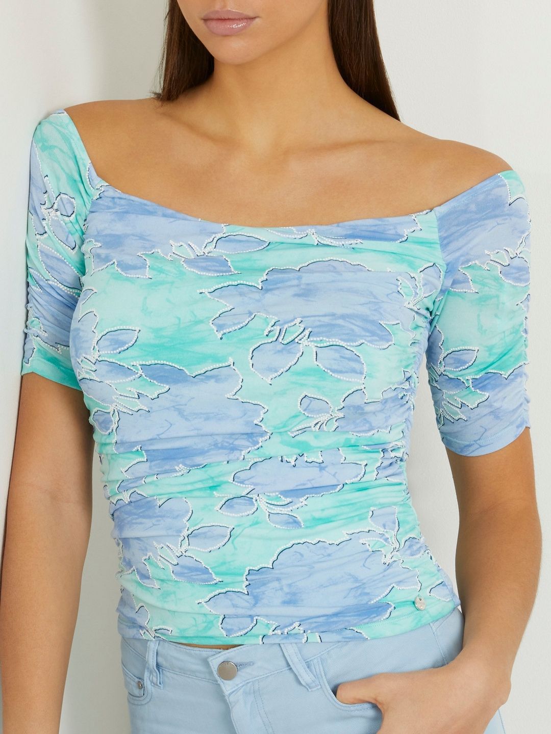 Elevate your wardrobe with this chic blue top, designed for the modern woman who appreciates style and comfort. Featuring a captivating floral print pattern, this top adds a touch of elegance to any ensemble. The regular fit ensures a flattering silhouette, while the half sleeves provide a perfect balance between coverage and breathability. Crafted from a premium polyester blend fabric, it offers both durability and a soft touch against the skin. The scoop neck design enhances its feminine appeal, making it ideal for both casual outings and more formal occasions. With its convenient pull-on closure, dressing up has never been easier. Embrace effortless style with this versatile piece that pairs beautifully with jeans, skirts, or trousers for any occasion.
