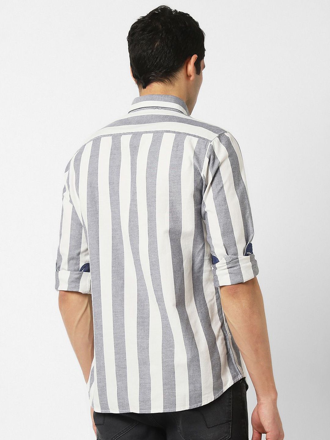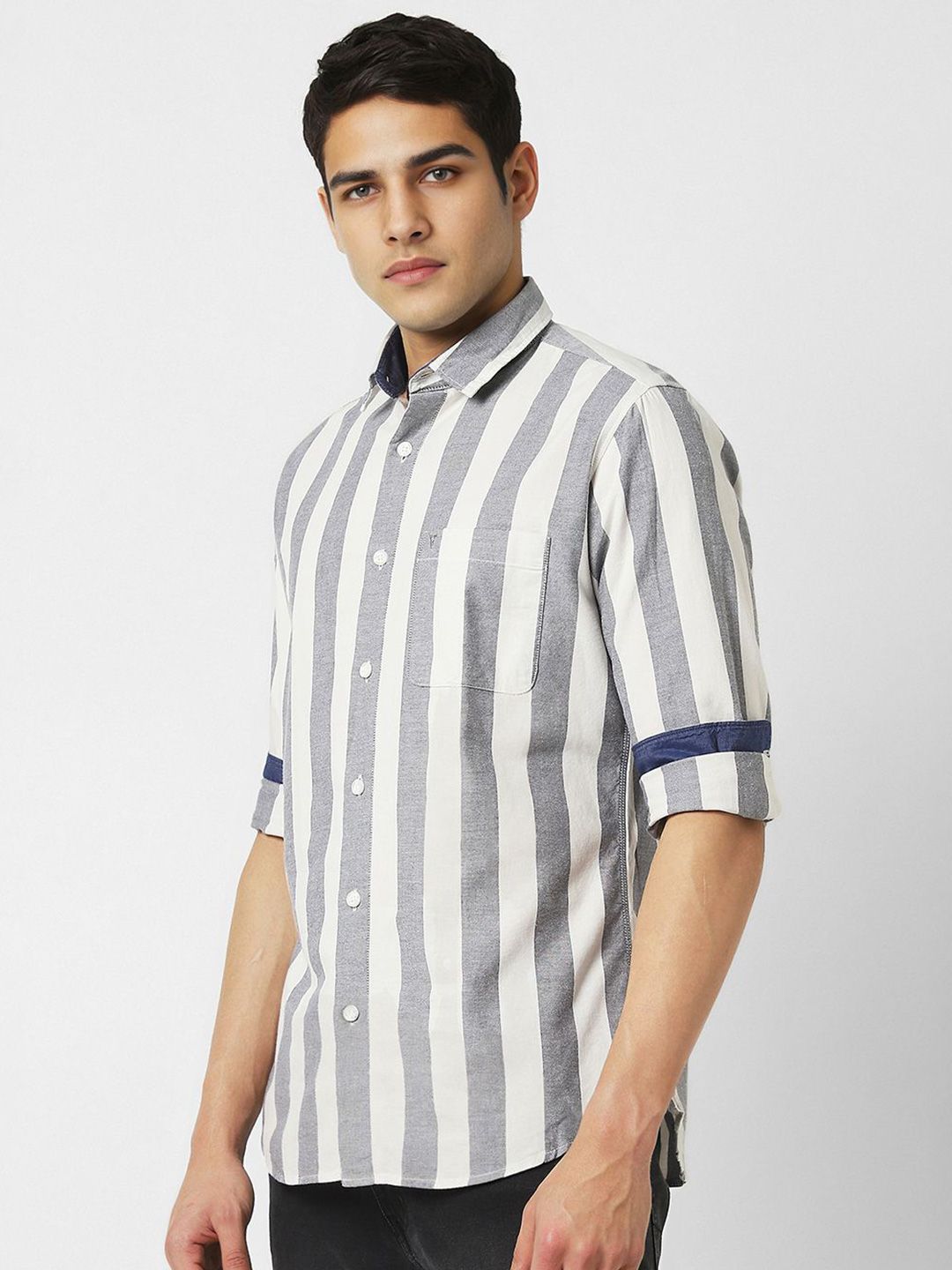 Maintain a timeless look as you transition between smart and casual in timeless style with van heusen's new season collection of men's shirts. Trust us, no matter what your style is, you need this long sleeves slim fit shirt in your wardrobe. It is made from 100%-cotton and features a roomy cut for a casual style. First date, night out, or special occasion? This vertical stripes grey shirt is your answer. It's lightweight, easy to care for, and even simpler to style. Must we go on? Wear dark jeans and a casual jacket for a dinner out.