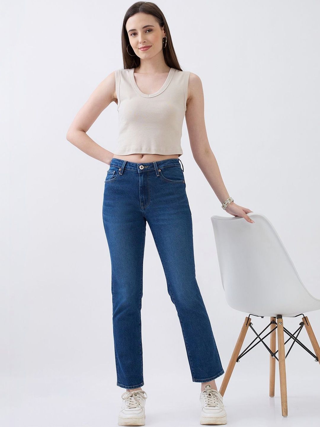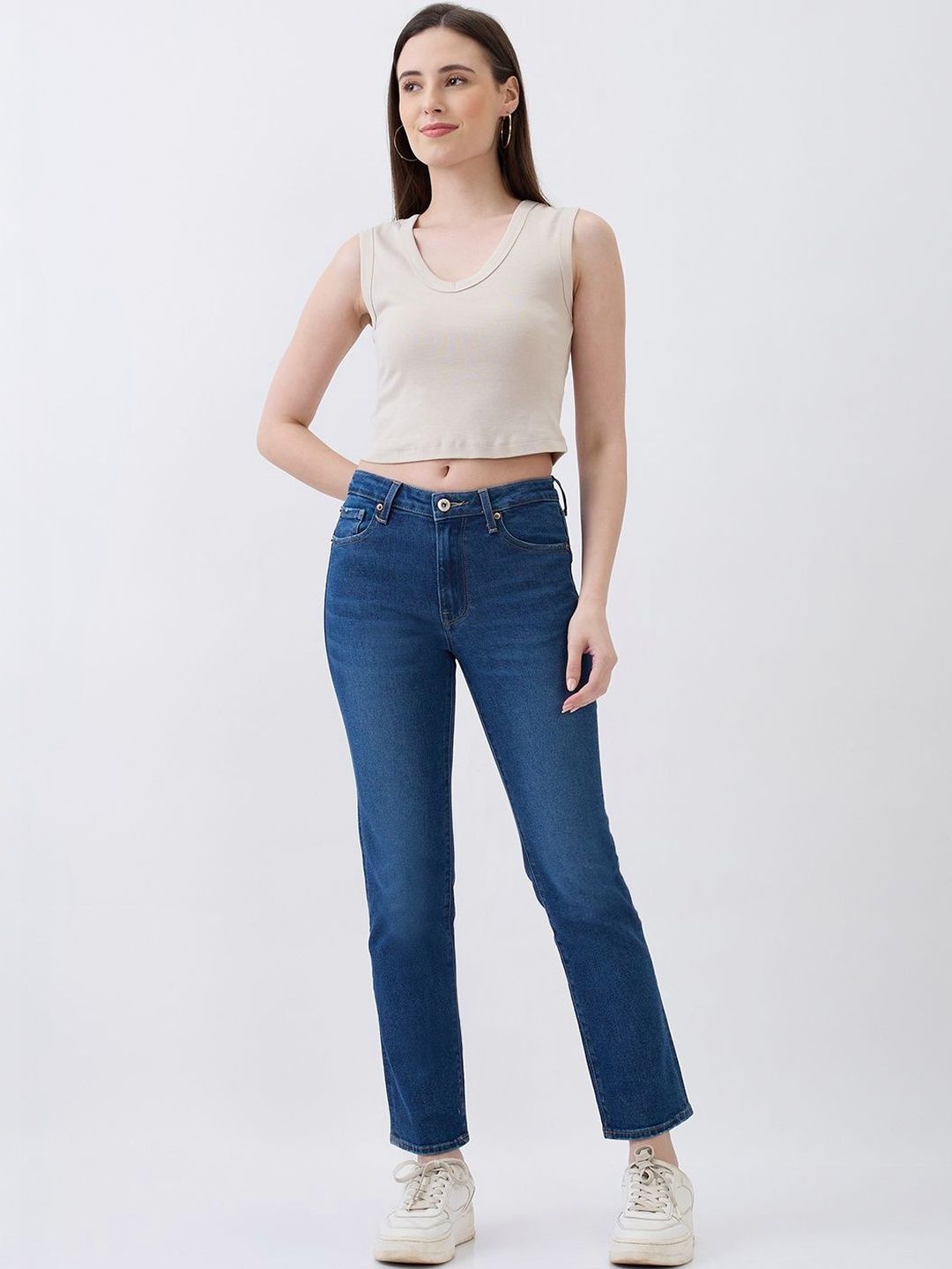 Mid Waisted Mid Blue Basic 5 Pocket Jeans In Slim Fit. Front Zip Fly And Metal Button Fastening.
