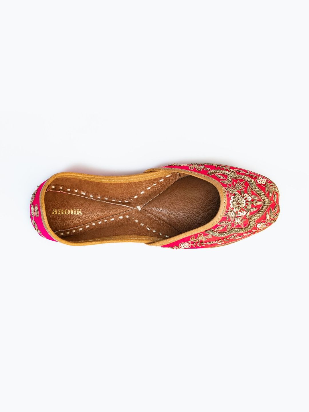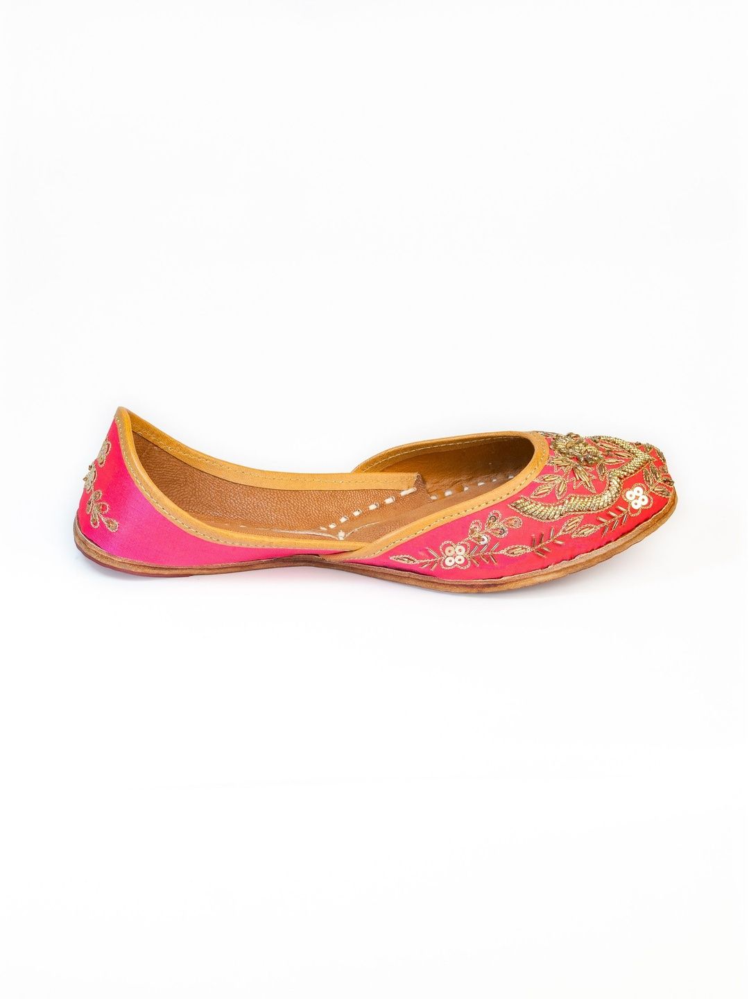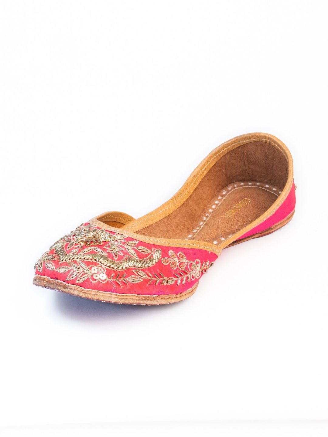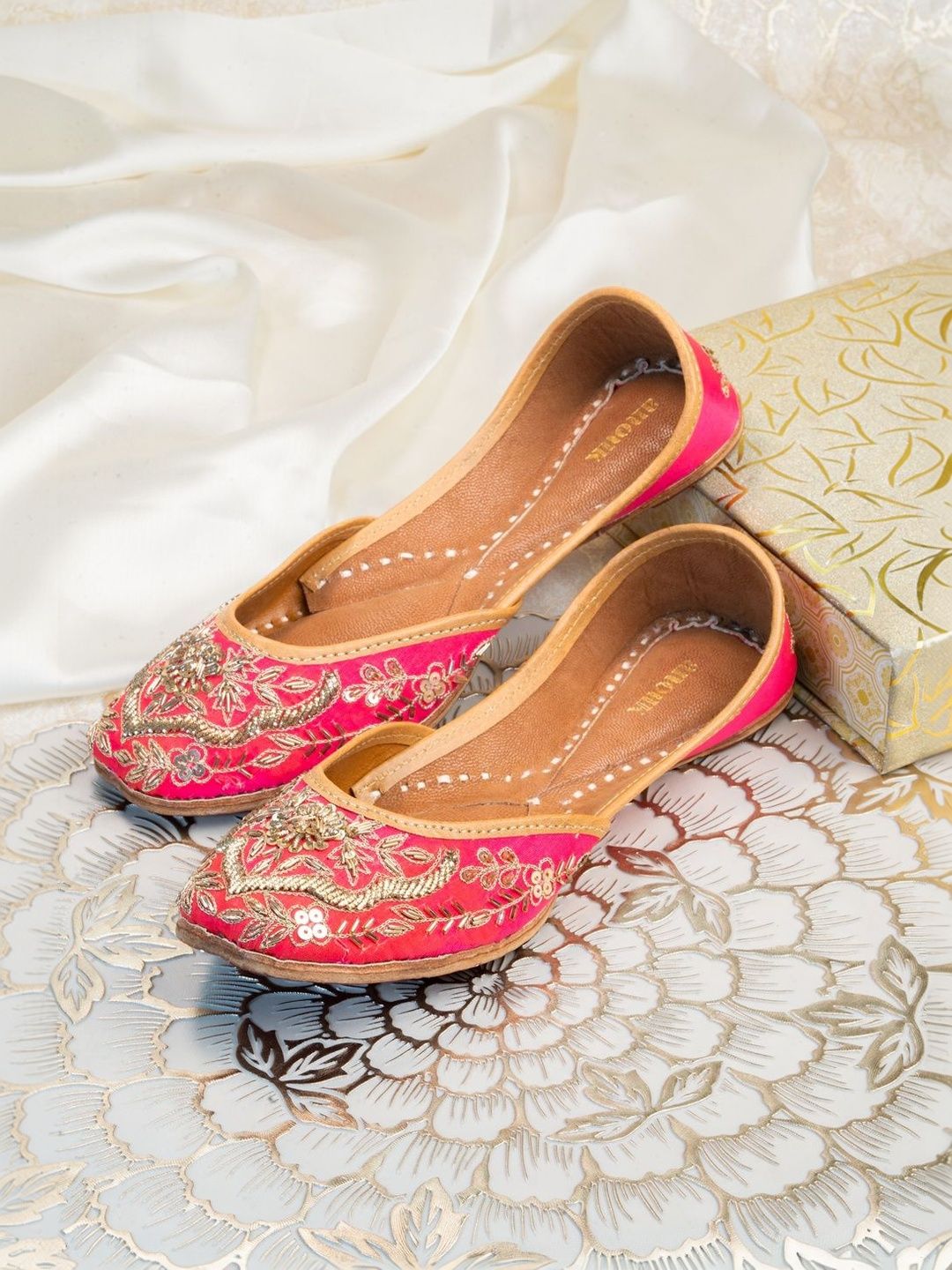 Pair these pink embroidered juttis with a lehenga, anarkali or festive kurta set to add a graceful ethnic finish to your look.