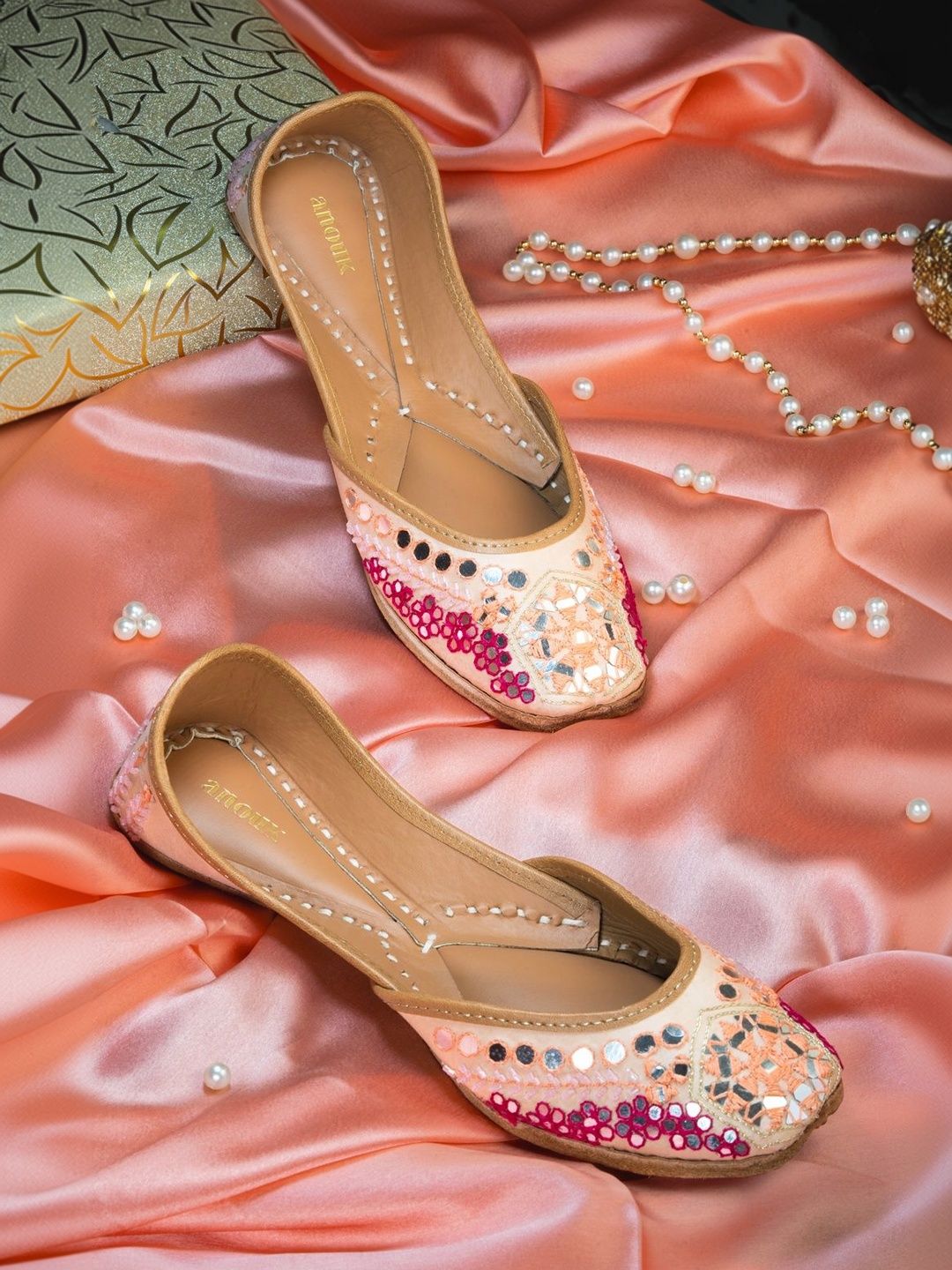 Style these elegant juttis with a pastel kurta set, lehenga, or festive saree for a graceful ethnic look.