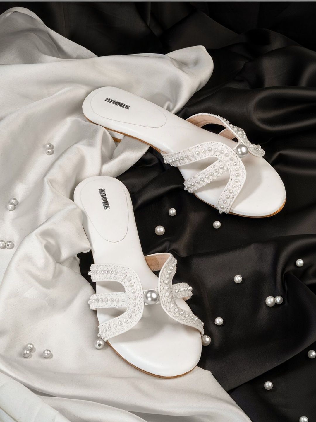 Style these pearl-detailed sliders with sarees, lehengas, or monochrome dresses for an effortlessly elegant look.