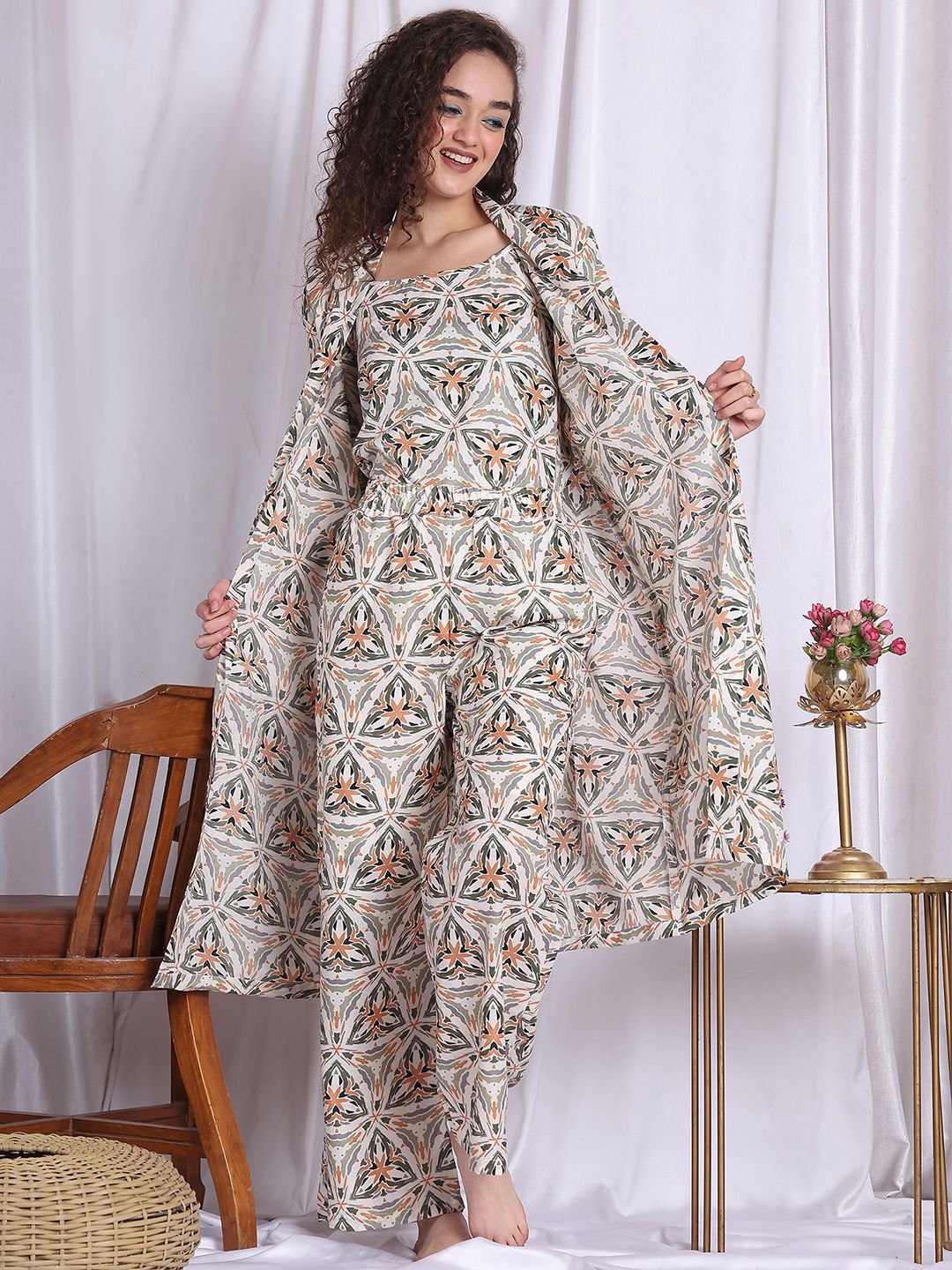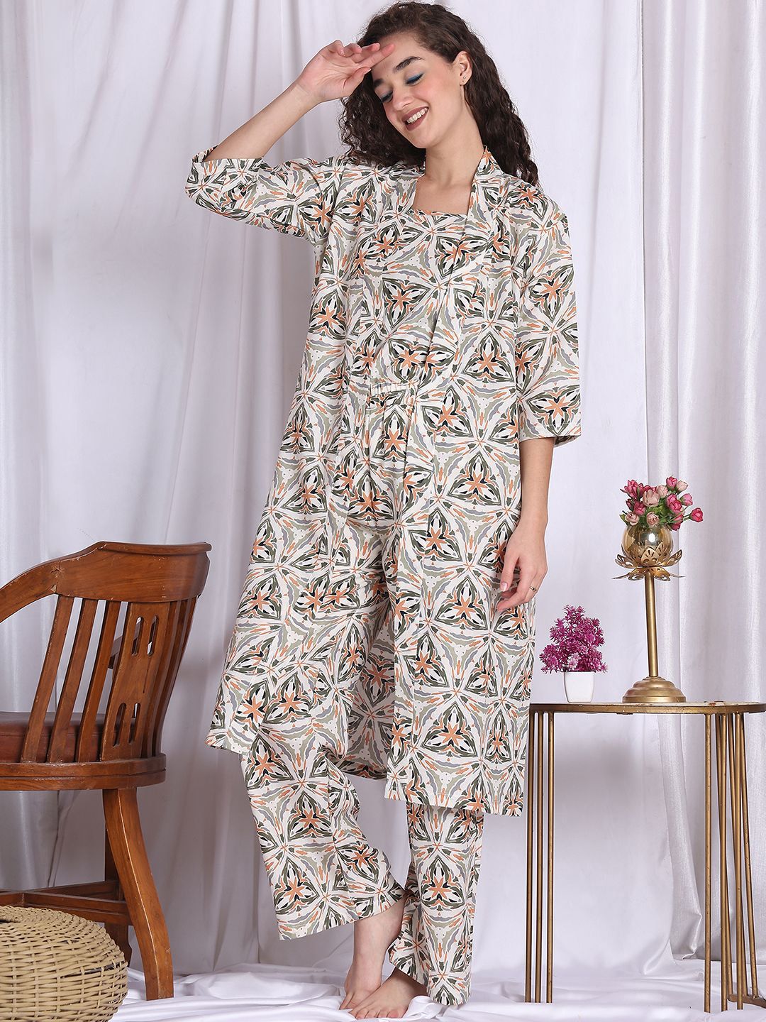 SET CONTENTS: Comfortable 3-piece loungewear set includes a coordinated shrug, camisole top, and full-length pyjama bottoms